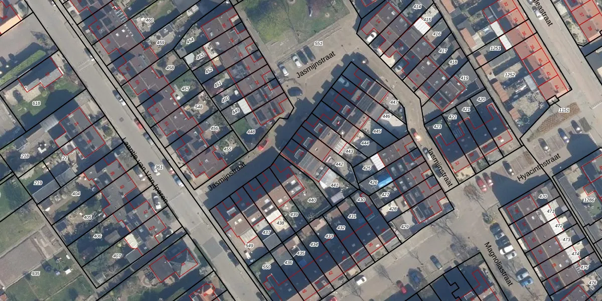 Het perceel waarop Jasmijnstraat 23 staat heeft een oppervlakte van 185 m². Dit is een middelgroot perceel. De perceeloppervlakte wordt geregistreerd door het Kadaster. Gedetailleerde informatie over de maten van dit perceel kunt u vinden in het rapport Kadastrale kaart met maatvoering van Jasmijnstraat 23.
