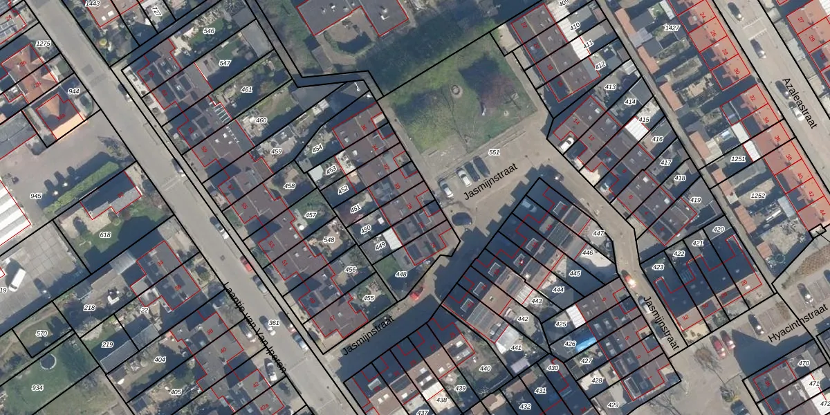 Het perceel waarop Jasmijnstraat 28 staat heeft een oppervlakte van 119 m². Dit is een middelgroot perceel. De perceeloppervlakte wordt geregistreerd door het Kadaster. Gedetailleerde informatie over de maten van dit perceel kunt u vinden in het rapport Kadastrale kaart met maatvoering van Jasmijnstraat 28.