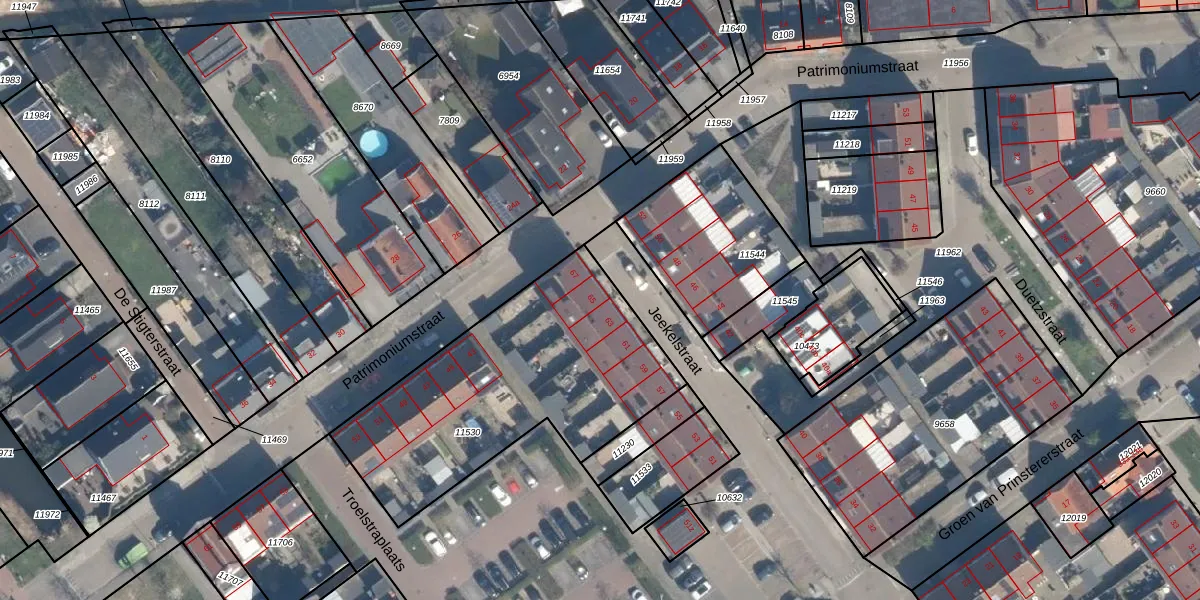 Het perceel waarop Jeekelstraat 65 staat heeft een oppervlakte van 1235 m². Dit is een zeer groot perceel. De perceeloppervlakte wordt geregistreerd door het Kadaster. Gedetailleerde informatie over de maten van dit perceel kunt u vinden in het rapport Kadastrale kaart met maatvoering van Jeekelstraat 65.
