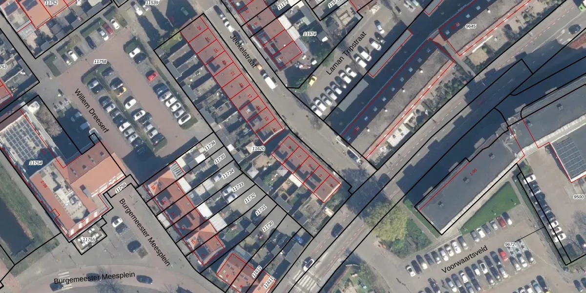 Jeekelstraat 9 is gelegen op kadastraal perceel LDM00B11620. Deze kadastrale aanduiding is uniek en wordt gebruikt door het Kadaster om eigendomsrechten en andere zakelijke rechten vast te leggen. Het perceel maakt onderdeel uit van de kadastrale gemeente Leerdam.