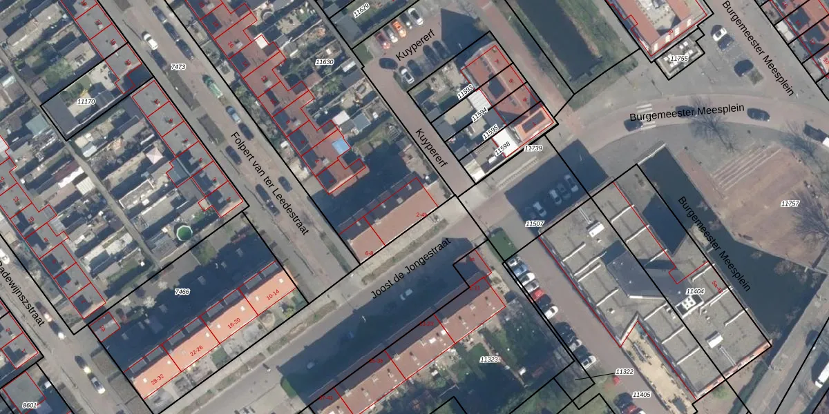 Het perceel waarop Joost de Jongestraat 2-a staat heeft een oppervlakte van 2713 m². Dit is een zeer groot perceel. De perceeloppervlakte wordt geregistreerd door het Kadaster. Gedetailleerde informatie over de maten van dit perceel kunt u vinden in het rapport Kadastrale kaart met maatvoering van Joost de Jongestraat 2-a.