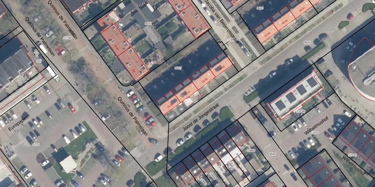 Het perceel waarop Joost de Jongestraat 70 staat heeft een oppervlakte van 1267 m². Dit is een zeer groot perceel. De perceeloppervlakte wordt geregistreerd door het Kadaster. Gedetailleerde informatie over de maten van dit perceel kunt u vinden in het rapport Kadastrale kaart met maatvoering van Joost de Jongestraat 70.