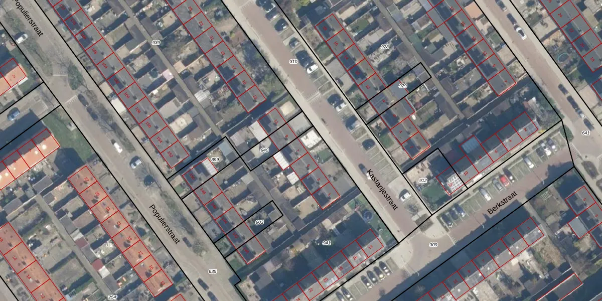 Het perceel waarop Kastanjestraat 7 staat heeft een oppervlakte van 2440 m². Dit is een zeer groot perceel. De perceeloppervlakte wordt geregistreerd door het Kadaster. Gedetailleerde informatie over de maten van dit perceel kunt u vinden in het rapport Kadastrale kaart met maatvoering van Kastanjestraat 7.
