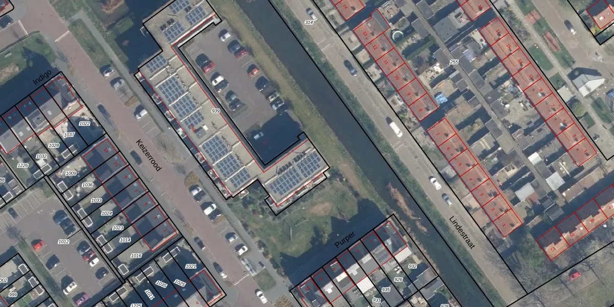 Het perceel waarop Keizerrood 44 staat heeft een oppervlakte van 1470 m². Dit is een zeer groot perceel. De perceeloppervlakte wordt geregistreerd door het Kadaster. Gedetailleerde informatie over de maten van dit perceel kunt u vinden in het rapport Kadastrale kaart met maatvoering van Keizerrood 44.
