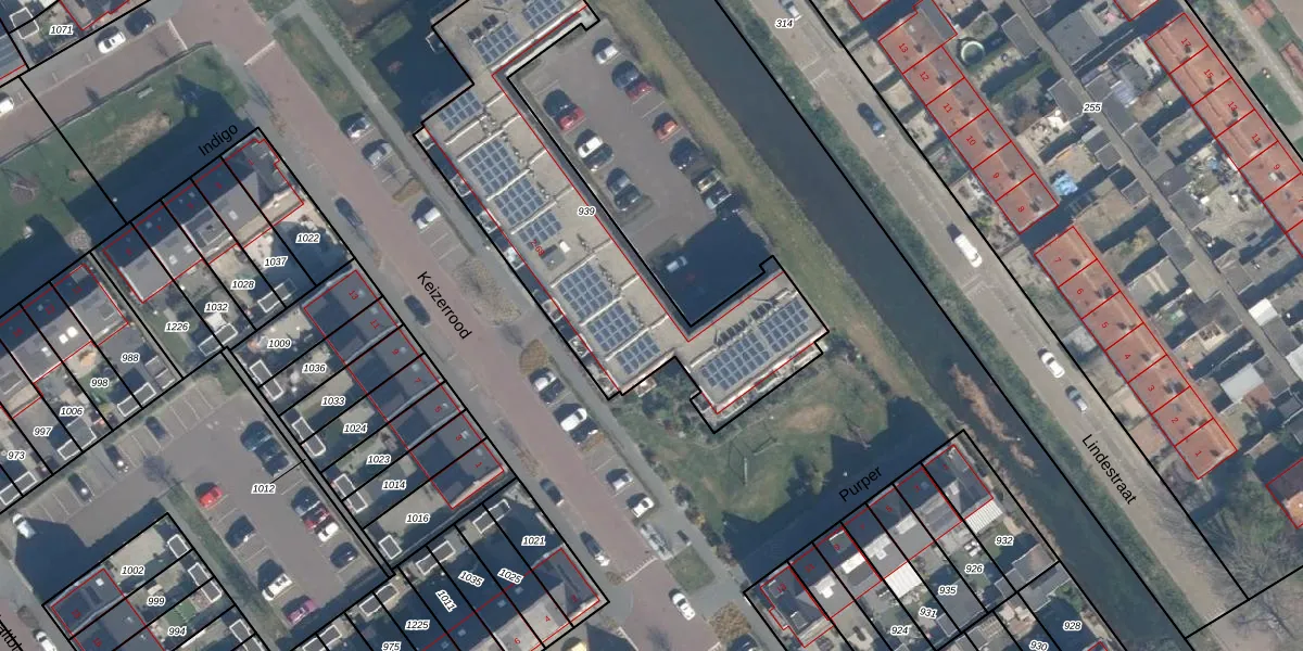 Het perceel waarop Keizerrood 50 staat heeft een oppervlakte van 1470 m². Dit is een zeer groot perceel. De perceeloppervlakte wordt geregistreerd door het Kadaster. Gedetailleerde informatie over de maten van dit perceel kunt u vinden in het rapport Kadastrale kaart met maatvoering van Keizerrood 50.