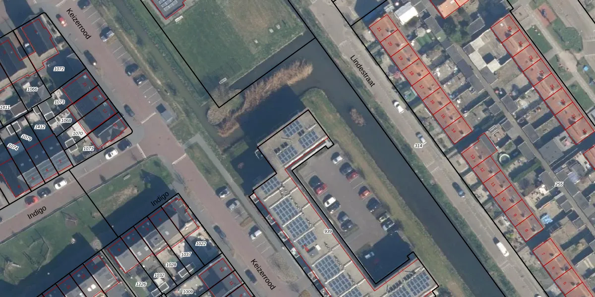 Het perceel waarop Keizerrood 66 staat heeft een oppervlakte van 1470 m². Dit is een zeer groot perceel. De perceeloppervlakte wordt geregistreerd door het Kadaster. Gedetailleerde informatie over de maten van dit perceel kunt u vinden in het rapport Kadastrale kaart met maatvoering van Keizerrood 66.