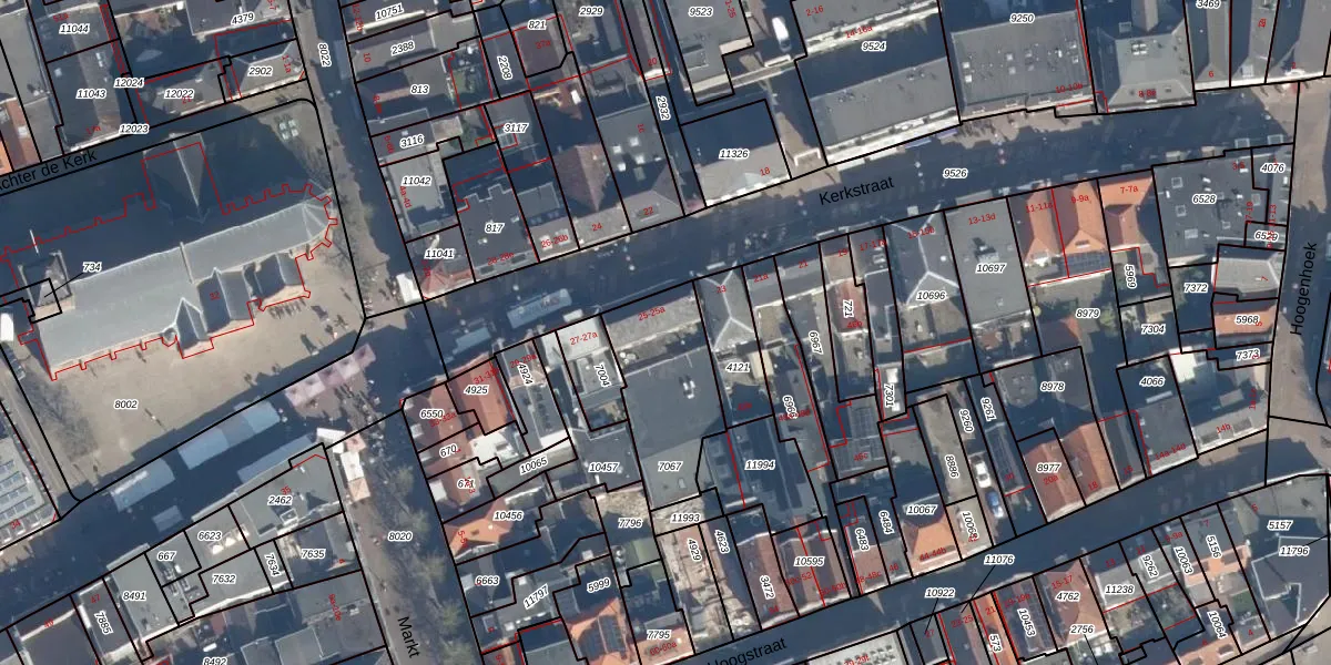 Het perceel waarop Kerkstraat 25-a staat heeft een oppervlakte van 390 m². Dit is een groot perceel. De perceeloppervlakte wordt geregistreerd door het Kadaster. Gedetailleerde informatie over de maten van dit perceel kunt u vinden in het rapport Kadastrale kaart met maatvoering van Kerkstraat 25-a.