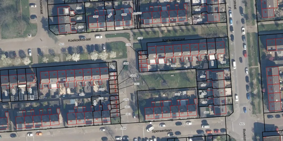 Het perceel waarop Koekoekstraat 46-e staat heeft een oppervlakte van 941 m². Dit is een groot perceel. De perceeloppervlakte wordt geregistreerd door het Kadaster. Gedetailleerde informatie over de maten van dit perceel kunt u vinden in het rapport Kadastrale kaart met maatvoering van Koekoekstraat 46-e.