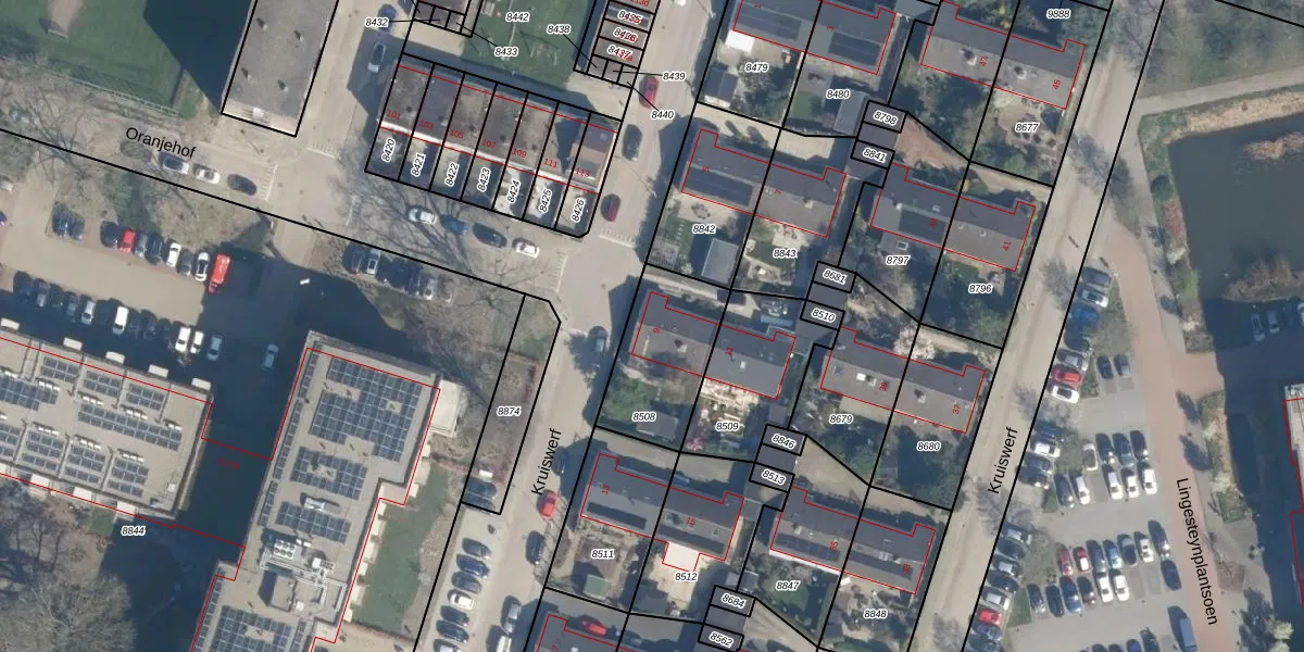 Gebruik de zoekbalk of klik op een perceel voor informatie over de adressen binnen dit perceel.