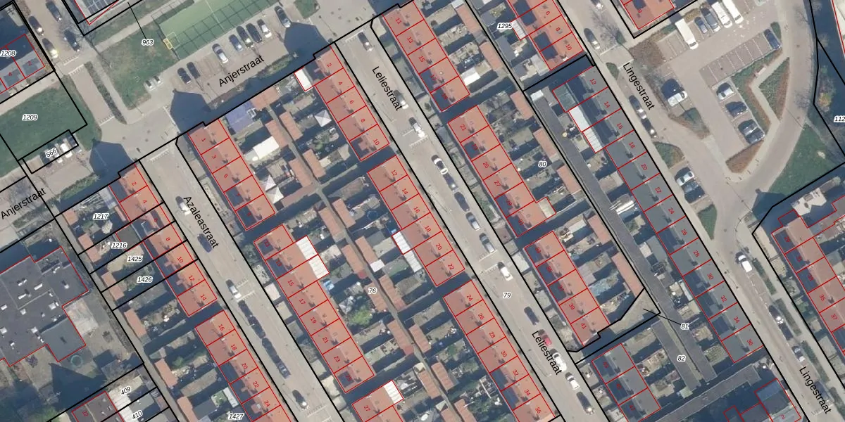 Het perceel waarop Leliestraat 16 staat heeft een oppervlakte van 4840 m². Dit is een zeer groot perceel. De perceeloppervlakte wordt geregistreerd door het Kadaster. Gedetailleerde informatie over de maten van dit perceel kunt u vinden in het rapport Kadastrale kaart met maatvoering van Leliestraat 16.