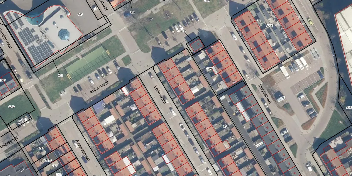 Het perceel waarop Leliestraat 17 staat heeft een oppervlakte van 2150 m². Dit is een zeer groot perceel. De perceeloppervlakte wordt geregistreerd door het Kadaster. Gedetailleerde informatie over de maten van dit perceel kunt u vinden in het rapport Kadastrale kaart met maatvoering van Leliestraat 17.