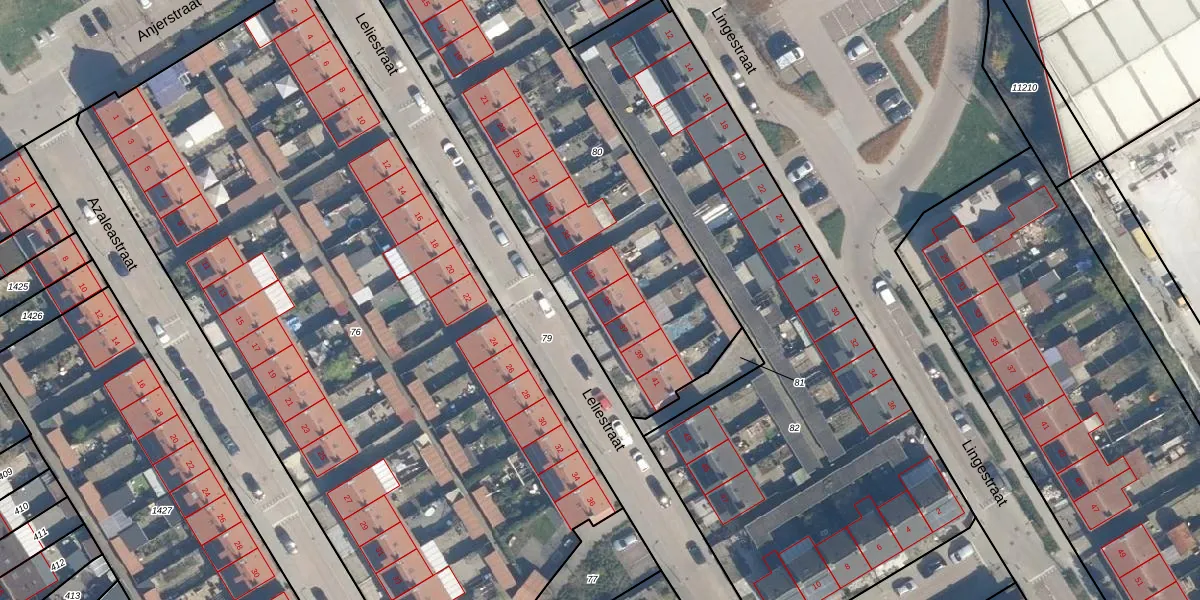 Het perceel waarop Leliestraat 35 staat heeft een oppervlakte van 2150 m². Dit is een zeer groot perceel. De perceeloppervlakte wordt geregistreerd door het Kadaster. Gedetailleerde informatie over de maten van dit perceel kunt u vinden in het rapport Kadastrale kaart met maatvoering van Leliestraat 35.