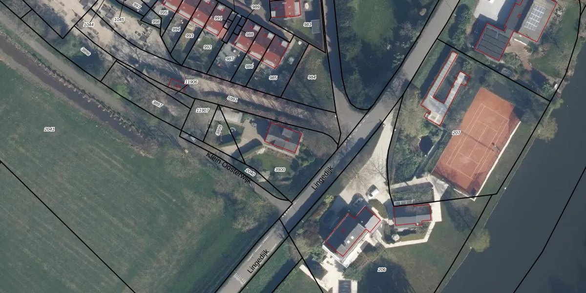 Het perceel waarop Lingedijk 34 staat heeft een oppervlakte van 680 m². Dit is een groot perceel. De perceeloppervlakte wordt geregistreerd door het Kadaster. Gedetailleerde informatie over de maten van dit perceel kunt u vinden in het rapport Kadastrale kaart met maatvoering van Lingedijk 34.