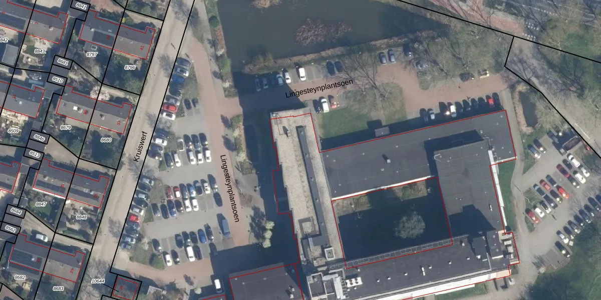 Het perceel waarop Lingesteynplantsoen 10 staat heeft een oppervlakte van 3,3 ha. Dit is een zeer groot perceel. De perceeloppervlakte wordt geregistreerd door het Kadaster. Gedetailleerde informatie over de maten van dit perceel kunt u vinden in het rapport Kadastrale kaart met maatvoering van Lingesteynplantsoen 10.