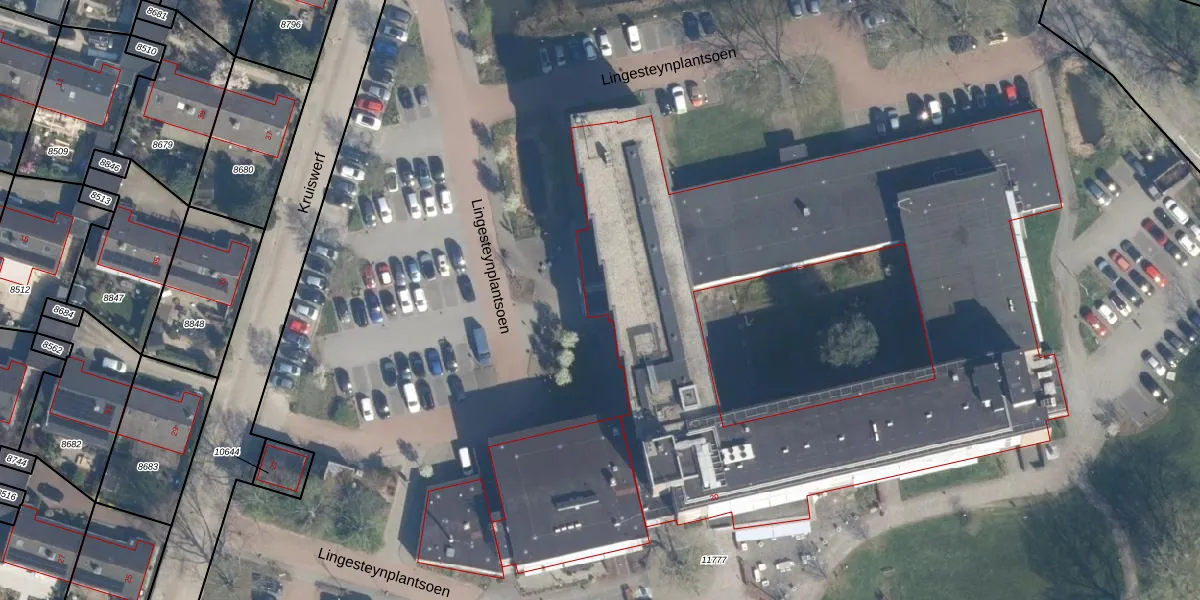 Het perceel waarop Lingesteynplantsoen 5 staat heeft een oppervlakte van 3,3 ha. Dit is een zeer groot perceel. De perceeloppervlakte wordt geregistreerd door het Kadaster. Gedetailleerde informatie over de maten van dit perceel kunt u vinden in het rapport Kadastrale kaart met maatvoering van Lingesteynplantsoen 5.