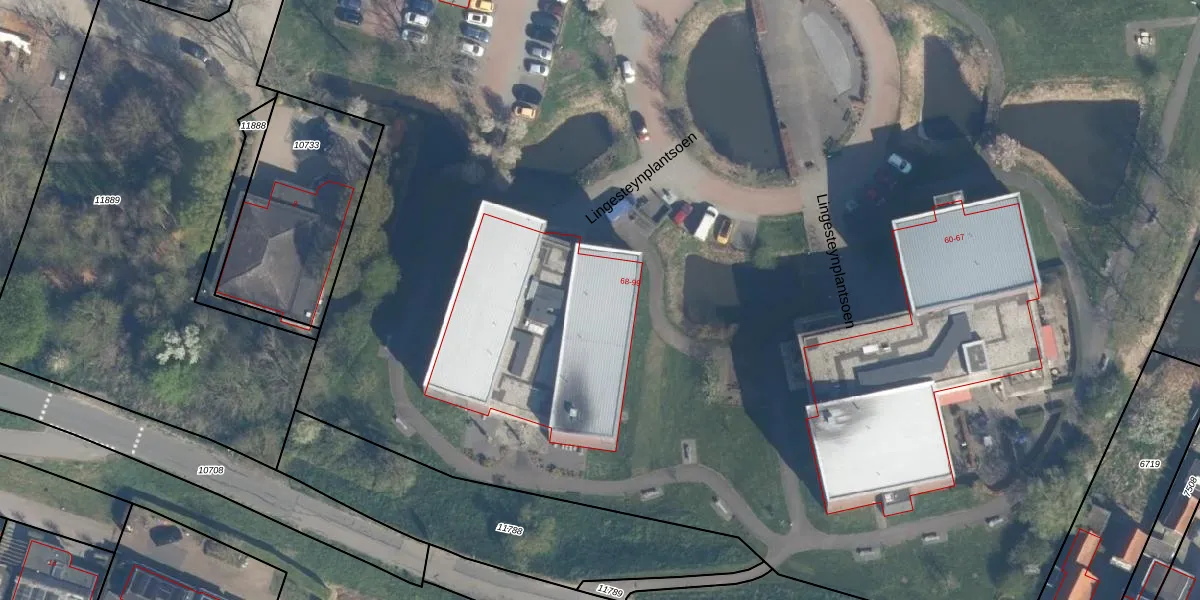 Het perceel waarop Lingesteynplantsoen 69 staat heeft een oppervlakte van 3,3 ha. Dit is een zeer groot perceel. De perceeloppervlakte wordt geregistreerd door het Kadaster. Gedetailleerde informatie over de maten van dit perceel kunt u vinden in het rapport Kadastrale kaart met maatvoering van Lingesteynplantsoen 69.