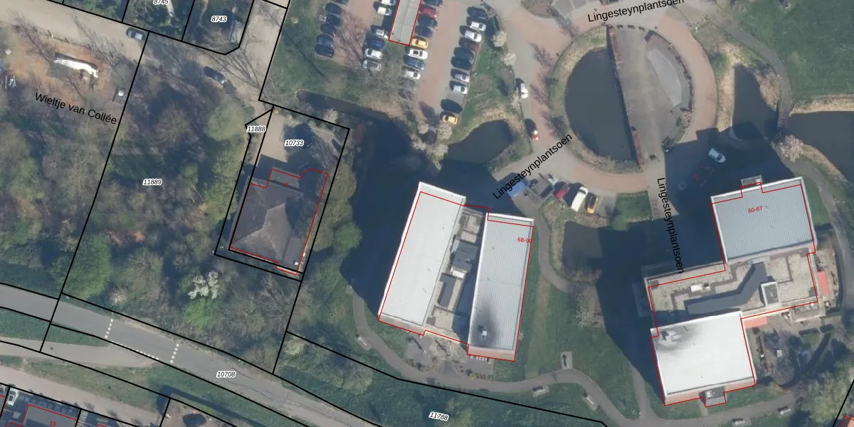 Het perceel waarop Lingesteynplantsoen 82 staat heeft een oppervlakte van 3,3 ha. Dit is een zeer groot perceel. De perceeloppervlakte wordt geregistreerd door het Kadaster. Gedetailleerde informatie over de maten van dit perceel kunt u vinden in het rapport Kadastrale kaart met maatvoering van Lingesteynplantsoen 82.