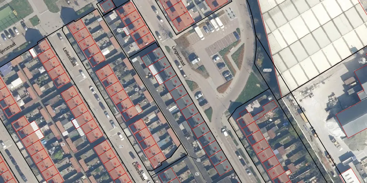 Het perceel waarop Lingestraat 20 staat heeft een oppervlakte van 2730 m². Dit is een zeer groot perceel. De perceeloppervlakte wordt geregistreerd door het Kadaster. Gedetailleerde informatie over de maten van dit perceel kunt u vinden in het rapport Kadastrale kaart met maatvoering van Lingestraat 20.