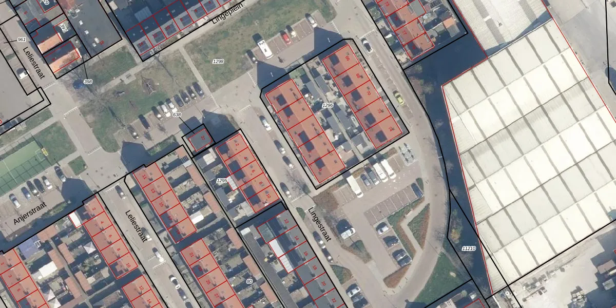 Het perceel waarop Lingestraat 7 staat heeft een oppervlakte van 1308 m². Dit is een zeer groot perceel. De perceeloppervlakte wordt geregistreerd door het Kadaster. Gedetailleerde informatie over de maten van dit perceel kunt u vinden in het rapport Kadastrale kaart met maatvoering van Lingestraat 7.