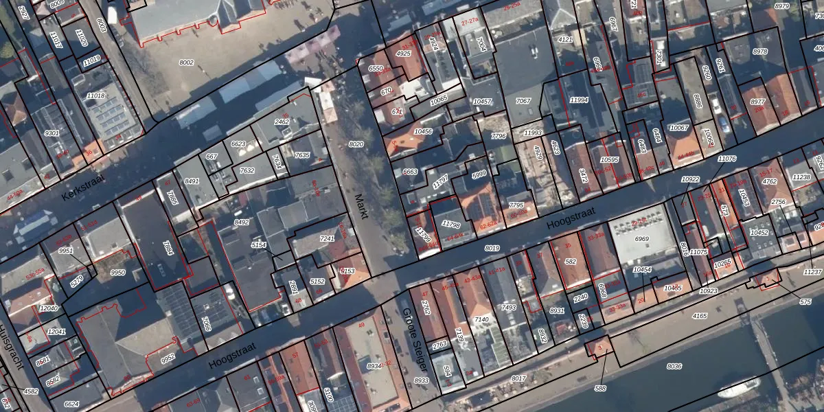 Het perceel waarop Markt 9 staat heeft een oppervlakte van 117 m². Dit is een middelgroot perceel. De perceeloppervlakte wordt geregistreerd door het Kadaster. Gedetailleerde informatie over de maten van dit perceel kunt u vinden in het rapport Kadastrale kaart met maatvoering van Markt 9.