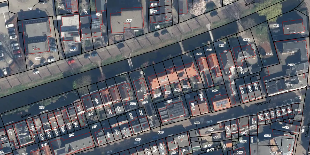 Het perceel waarop Meent 21 staat heeft een oppervlakte van 203 m². Dit is een middelgroot perceel. De perceeloppervlakte wordt geregistreerd door het Kadaster. Gedetailleerde informatie over de maten van dit perceel kunt u vinden in het rapport Kadastrale kaart met maatvoering van Meent 21.