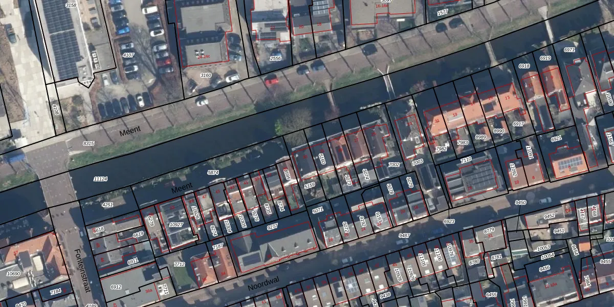Gebruik de zoekbalk of klik op een perceel voor informatie over de adressen binnen dit perceel.