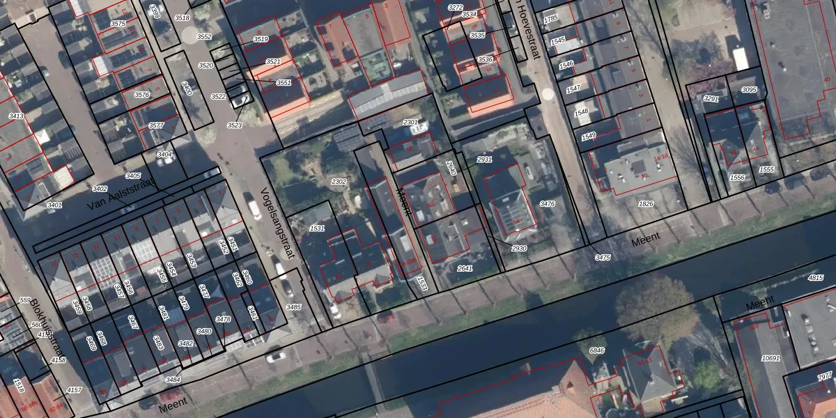 Het perceel waarop Meent 62 staat heeft een oppervlakte van 219 m². Dit is een middelgroot perceel. De perceeloppervlakte wordt geregistreerd door het Kadaster. Gedetailleerde informatie over de maten van dit perceel kunt u vinden in het rapport Kadastrale kaart met maatvoering van Meent 62.