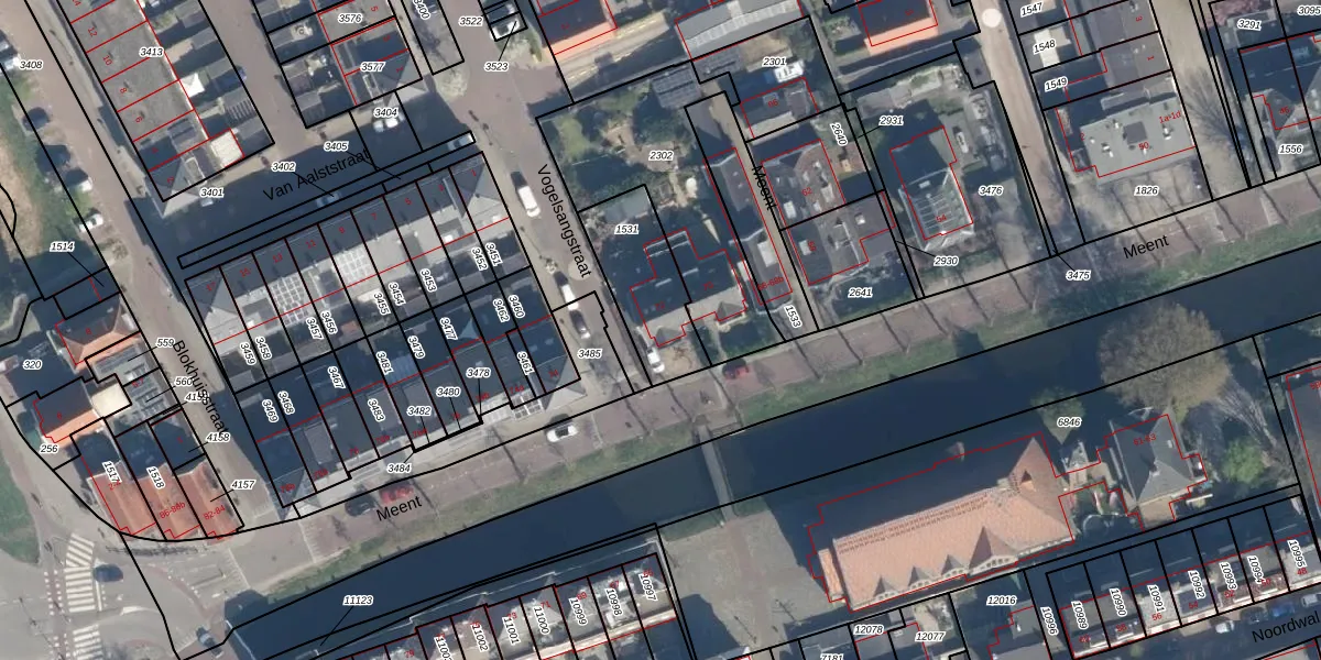 Gebruik de zoekbalk of klik op een perceel voor informatie over de adressen binnen dit perceel.