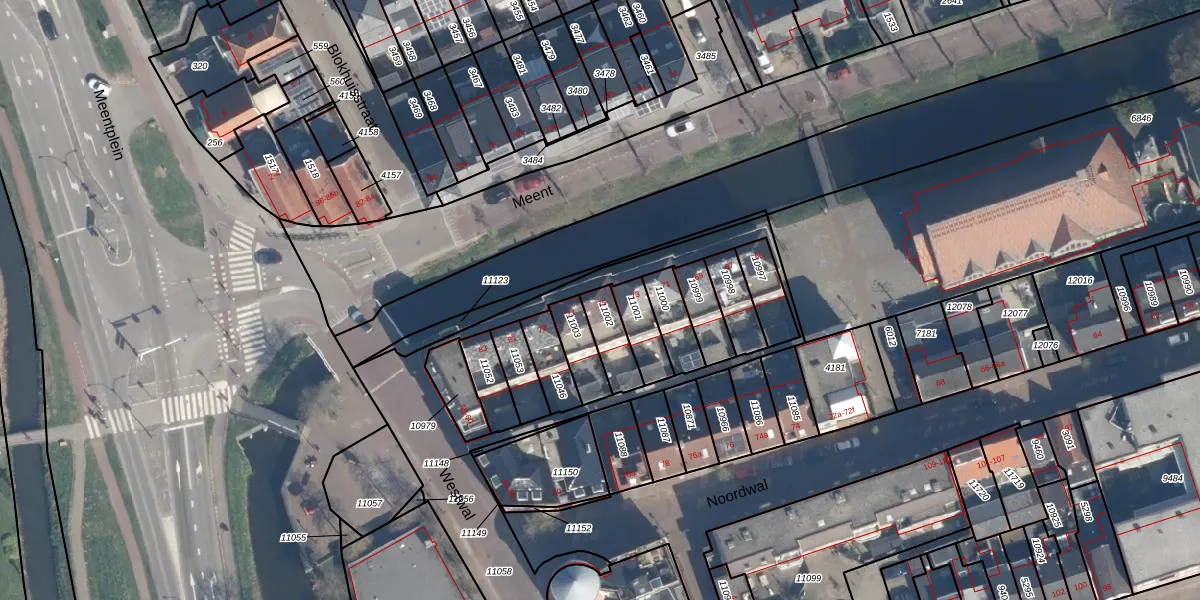 Het perceel waarop Meent 75 staat heeft een oppervlakte van 95 m². Dit is een klein perceel. De perceeloppervlakte wordt geregistreerd door het Kadaster. Gedetailleerde informatie over de maten van dit perceel kunt u vinden in het rapport Kadastrale kaart met maatvoering van Meent 75.