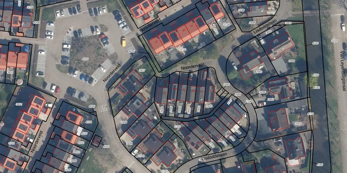 Noorderveld 65-a is gelegen op kadastraal perceel LDM00C2695. Deze kadastrale aanduiding is uniek en wordt gebruikt door het Kadaster om eigendomsrechten en andere zakelijke rechten vast te leggen. Het perceel maakt onderdeel uit van de kadastrale gemeente Leerdam.