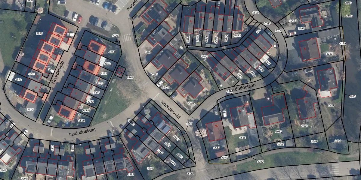 Gebruik de zoekbalk of klik op een perceel voor informatie over de adressen binnen dit perceel.