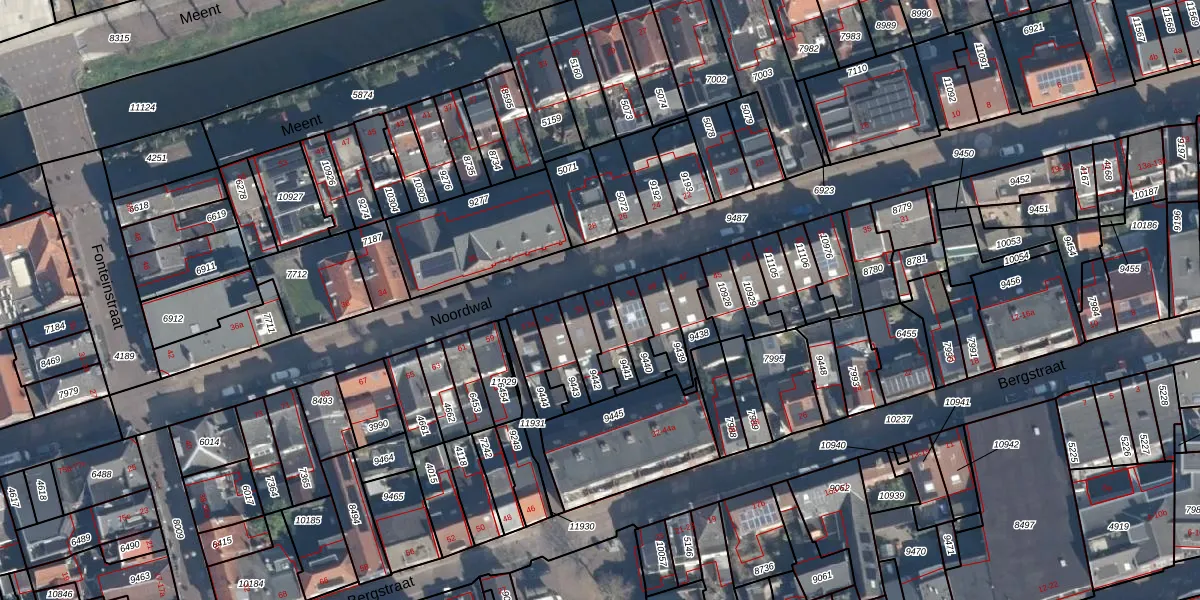 Het perceel waarop Noordwal 53 staat heeft een oppervlakte van 80 m². Dit is een klein perceel. De perceeloppervlakte wordt geregistreerd door het Kadaster. Gedetailleerde informatie over de maten van dit perceel kunt u vinden in het rapport Kadastrale kaart met maatvoering van Noordwal 53.