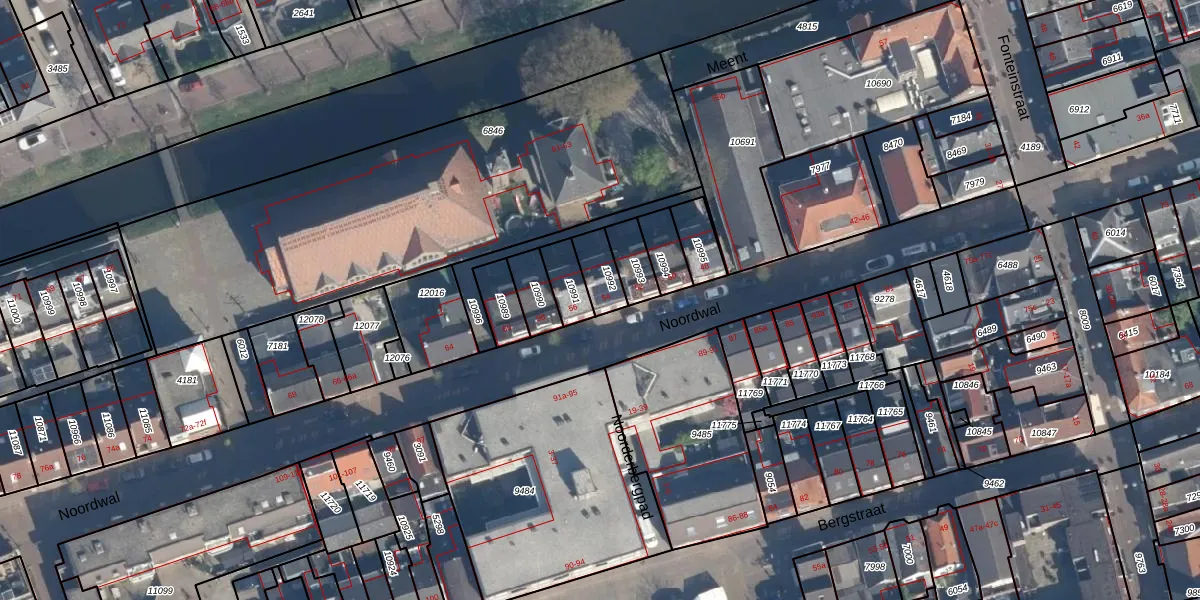 Het perceel waarop Noordwal 54-a staat heeft een oppervlakte van 77 m². Dit is een klein perceel. De perceeloppervlakte wordt geregistreerd door het Kadaster. Gedetailleerde informatie over de maten van dit perceel kunt u vinden in het rapport Kadastrale kaart met maatvoering van Noordwal 54-a.