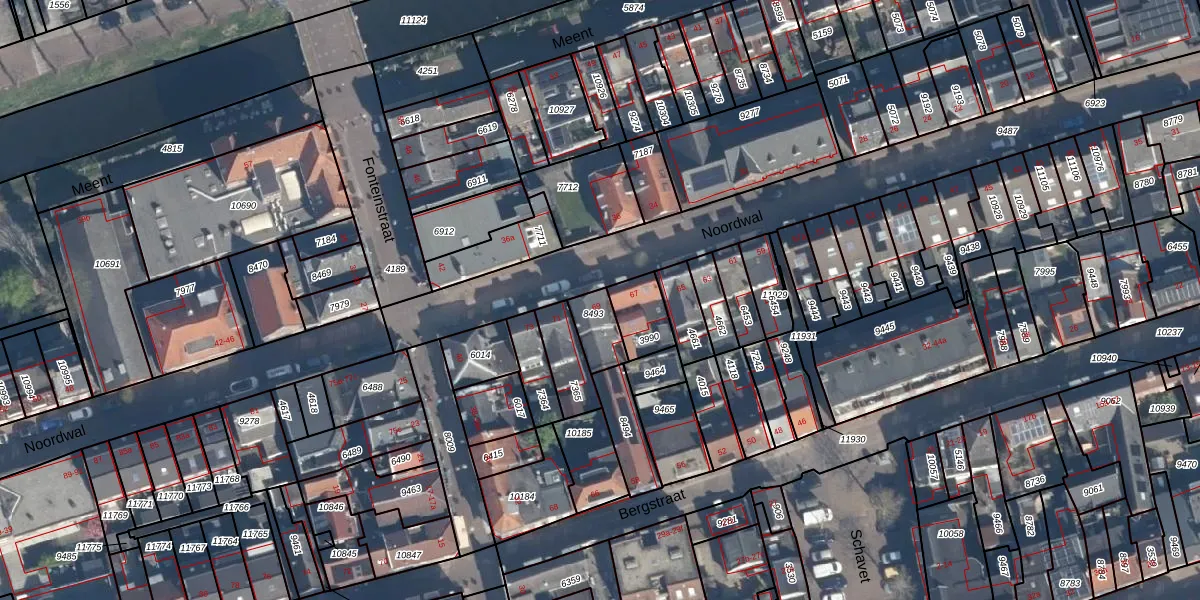 Het perceel waarop Noordwal 69 staat heeft een oppervlakte van 87 m². Dit is een klein perceel. De perceeloppervlakte wordt geregistreerd door het Kadaster. Gedetailleerde informatie over de maten van dit perceel kunt u vinden in het rapport Kadastrale kaart met maatvoering van Noordwal 69.