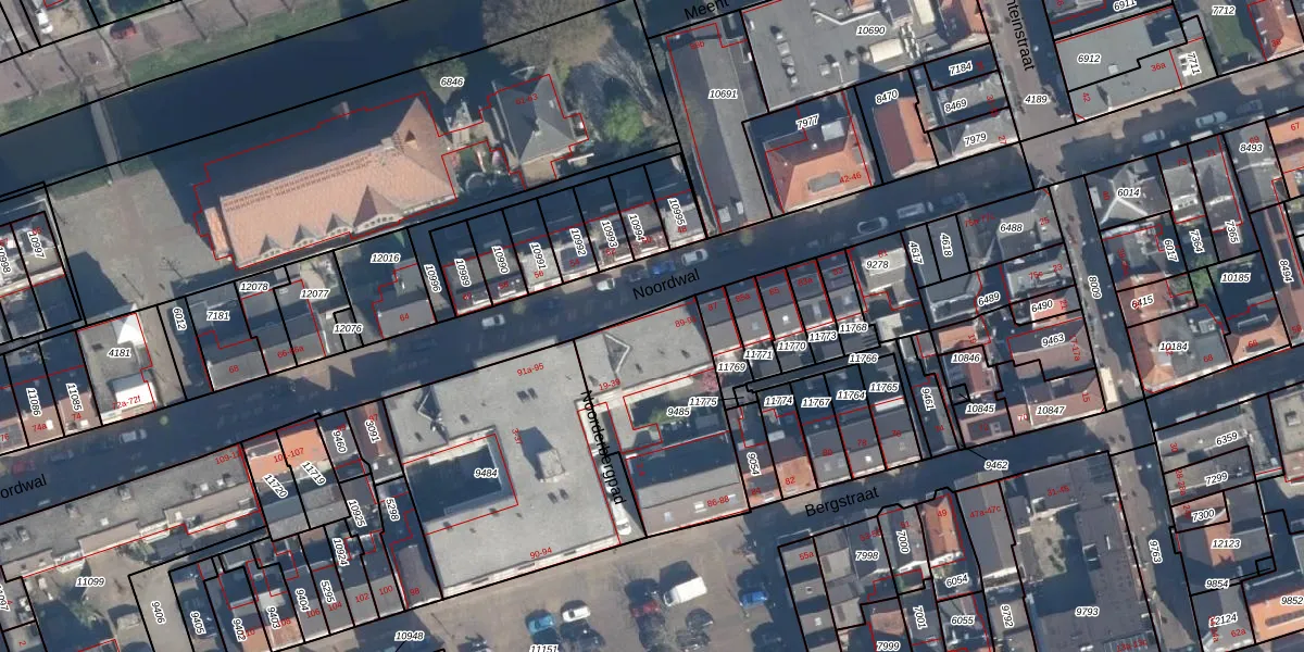Het perceel waarop Noordwal 91 staat heeft een oppervlakte van 590 m². Dit is een groot perceel. De perceeloppervlakte wordt geregistreerd door het Kadaster. Gedetailleerde informatie over de maten van dit perceel kunt u vinden in het rapport Kadastrale kaart met maatvoering van Noordwal 91.