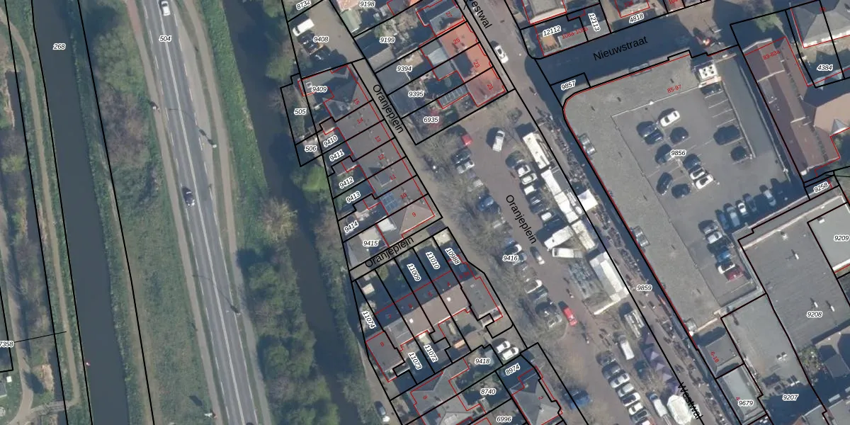 Oranjeplein 9 is gelegen op kadastraal perceel LDM00B9415. Deze kadastrale aanduiding is uniek en wordt gebruikt door het Kadaster om eigendomsrechten en andere zakelijke rechten vast te leggen. Het perceel maakt onderdeel uit van de kadastrale gemeente Leerdam.