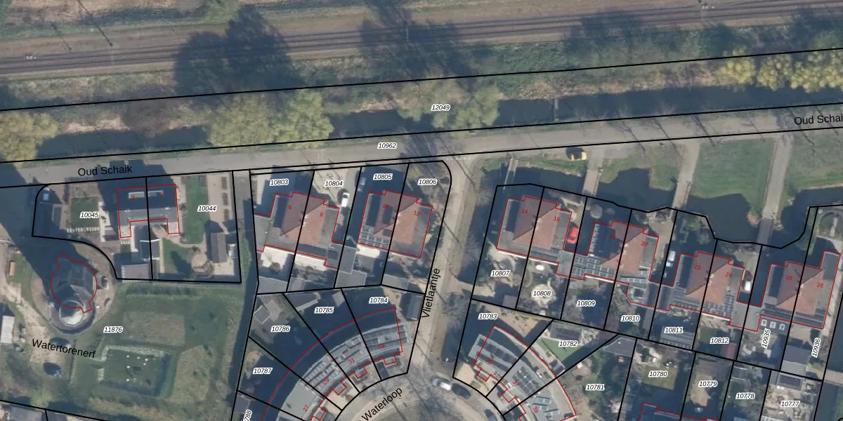 Oud Schaik 12 is gelegen op kadastraal perceel LDM00B10806. Deze kadastrale aanduiding is uniek en wordt gebruikt door het Kadaster om eigendomsrechten en andere zakelijke rechten vast te leggen. Het perceel maakt onderdeel uit van de kadastrale gemeente Leerdam.