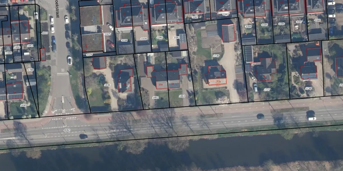 Gebruik de zoekbalk of klik op een perceel voor informatie over de adressen binnen dit perceel.
