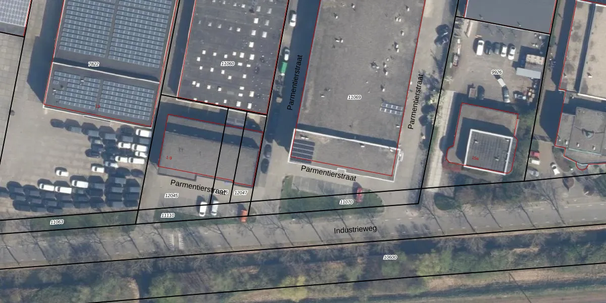 Het perceel waarop Parmentierstraat 2 staat heeft een oppervlakte van 4275 m². Dit is een zeer groot perceel. De perceeloppervlakte wordt geregistreerd door het Kadaster. Gedetailleerde informatie over de maten van dit perceel kunt u vinden in het rapport Kadastrale kaart met maatvoering van Parmentierstraat 2.