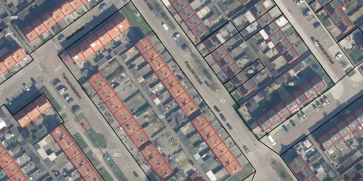 Het perceel waarop Populierstraat 17 staat heeft een oppervlakte van 5615 m². Dit is een zeer groot perceel. De perceeloppervlakte wordt geregistreerd door het Kadaster. Gedetailleerde informatie over de maten van dit perceel kunt u vinden in het rapport Kadastrale kaart met maatvoering van Populierstraat 17.