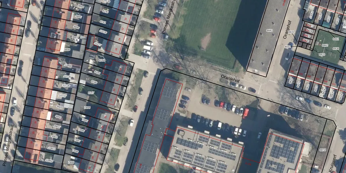 Het perceel waarop Prinses Marijkestraat 21 staat heeft een oppervlakte van 9486 m². Dit is een zeer groot perceel. De perceeloppervlakte wordt geregistreerd door het Kadaster. Gedetailleerde informatie over de maten van dit perceel kunt u vinden in het rapport Kadastrale kaart met maatvoering van Prinses Marijkestraat 21.