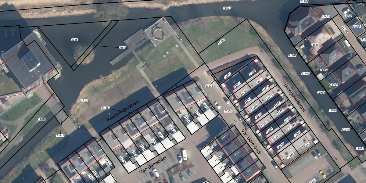 Gebruik de zoekbalk of klik op een perceel voor informatie over de adressen binnen dit perceel.
