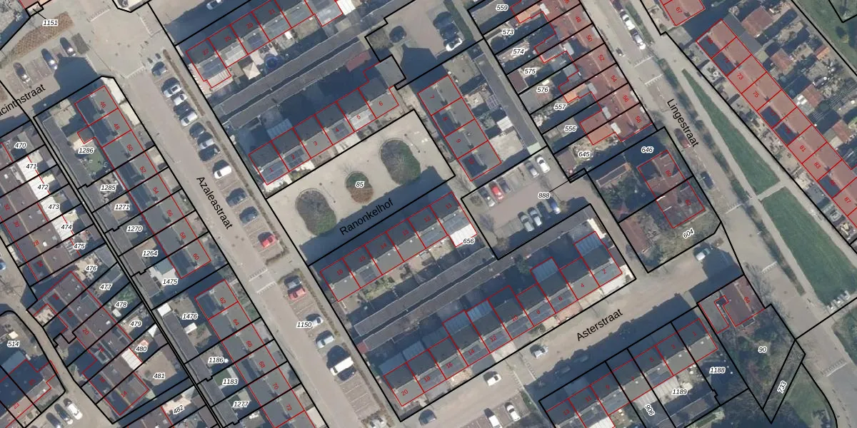 Het perceel waarop Ranonkelhof 12 staat heeft een oppervlakte van 5482 m². Dit is een zeer groot perceel. De perceeloppervlakte wordt geregistreerd door het Kadaster. Gedetailleerde informatie over de maten van dit perceel kunt u vinden in het rapport Kadastrale kaart met maatvoering van Ranonkelhof 12.