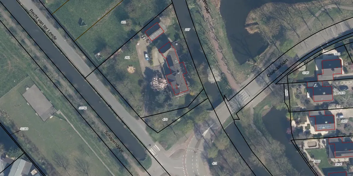 Het perceel waarop Recht van ter Leede 2 staat heeft een oppervlakte van 2185 m². Dit is een zeer groot perceel. De perceeloppervlakte wordt geregistreerd door het Kadaster. Gedetailleerde informatie over de maten van dit perceel kunt u vinden in het rapport Kadastrale kaart met maatvoering van Recht van ter Leede 2.