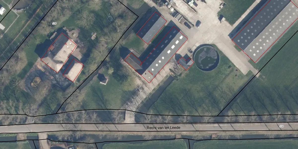 Het perceel waarop Recht van ter Leede 24 staat heeft een oppervlakte van 7,3 ha. Dit is een zeer groot perceel. De perceeloppervlakte wordt geregistreerd door het Kadaster. Gedetailleerde informatie over de maten van dit perceel kunt u vinden in het rapport Kadastrale kaart met maatvoering van Recht van ter Leede 24.
