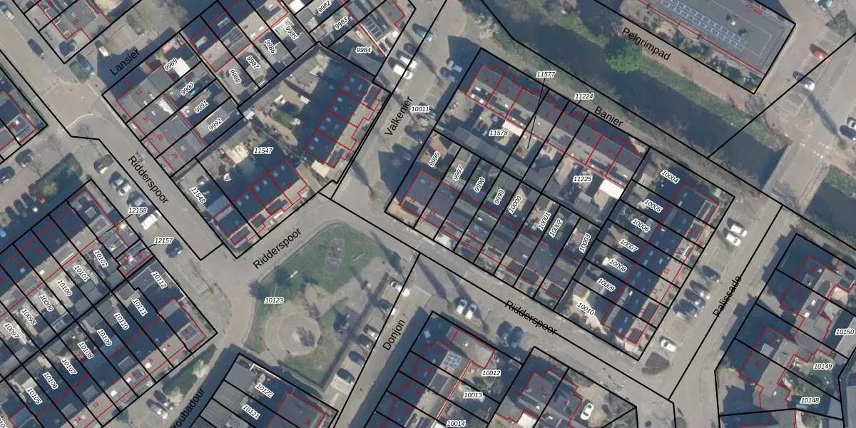 Ridderspoor 14 is gelegen op kadastraal perceel LDM00B9997. Deze kadastrale aanduiding is uniek en wordt gebruikt door het Kadaster om eigendomsrechten en andere zakelijke rechten vast te leggen. Het perceel maakt onderdeel uit van de kadastrale gemeente Leerdam.
