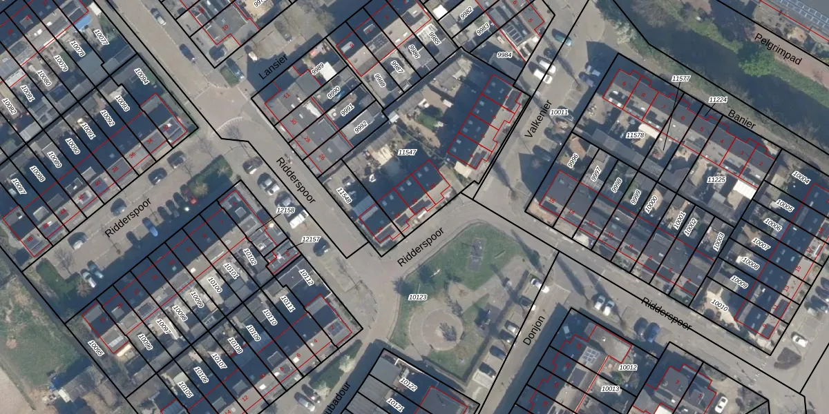 Ridderspoor 20 is gelegen op kadastraal perceel LDM00B11547. Deze kadastrale aanduiding is uniek en wordt gebruikt door het Kadaster om eigendomsrechten en andere zakelijke rechten vast te leggen. Het perceel maakt onderdeel uit van de kadastrale gemeente Leerdam.
