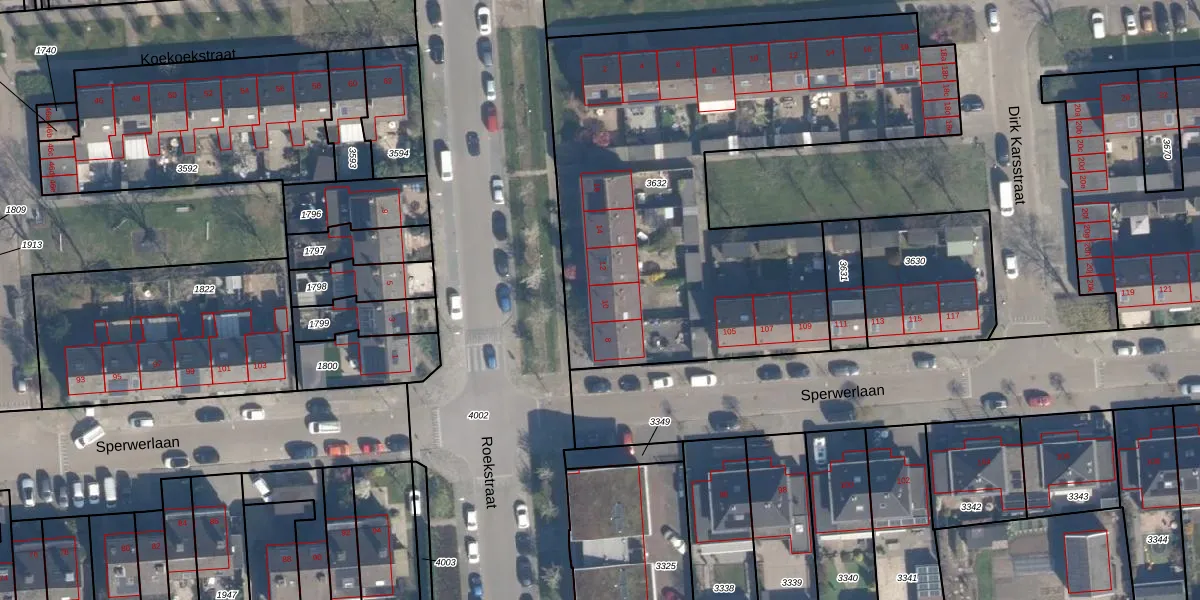 Het perceel waarop Roekstraat 10 staat heeft een oppervlakte van 2623 m². Dit is een zeer groot perceel. De perceeloppervlakte wordt geregistreerd door het Kadaster. Gedetailleerde informatie over de maten van dit perceel kunt u vinden in het rapport Kadastrale kaart met maatvoering van Roekstraat 10.
