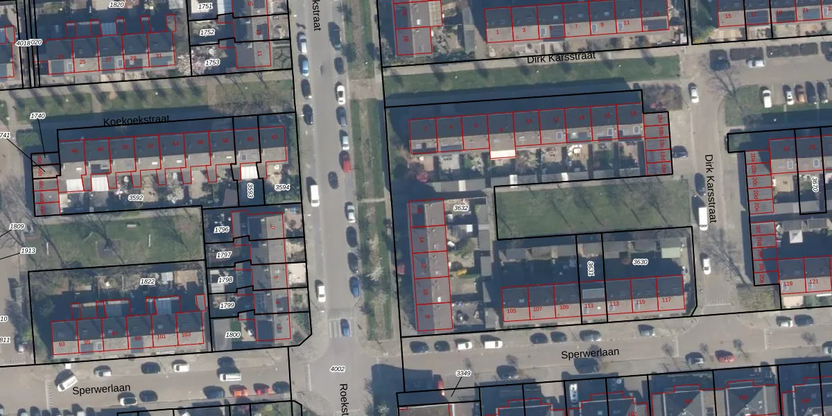 Het perceel waarop Roekstraat 16 staat heeft een oppervlakte van 2623 m². Dit is een zeer groot perceel. De perceeloppervlakte wordt geregistreerd door het Kadaster. Gedetailleerde informatie over de maten van dit perceel kunt u vinden in het rapport Kadastrale kaart met maatvoering van Roekstraat 16.