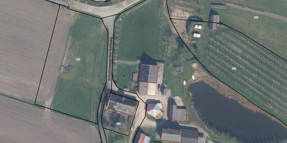 Schoonrewoerdse Kerkweg 2 is gelegen op kadastraal perceel LDM00G552. Deze kadastrale aanduiding is uniek en wordt gebruikt door het Kadaster om eigendomsrechten en andere zakelijke rechten vast te leggen. Het perceel maakt onderdeel uit van de kadastrale gemeente Leerdam.